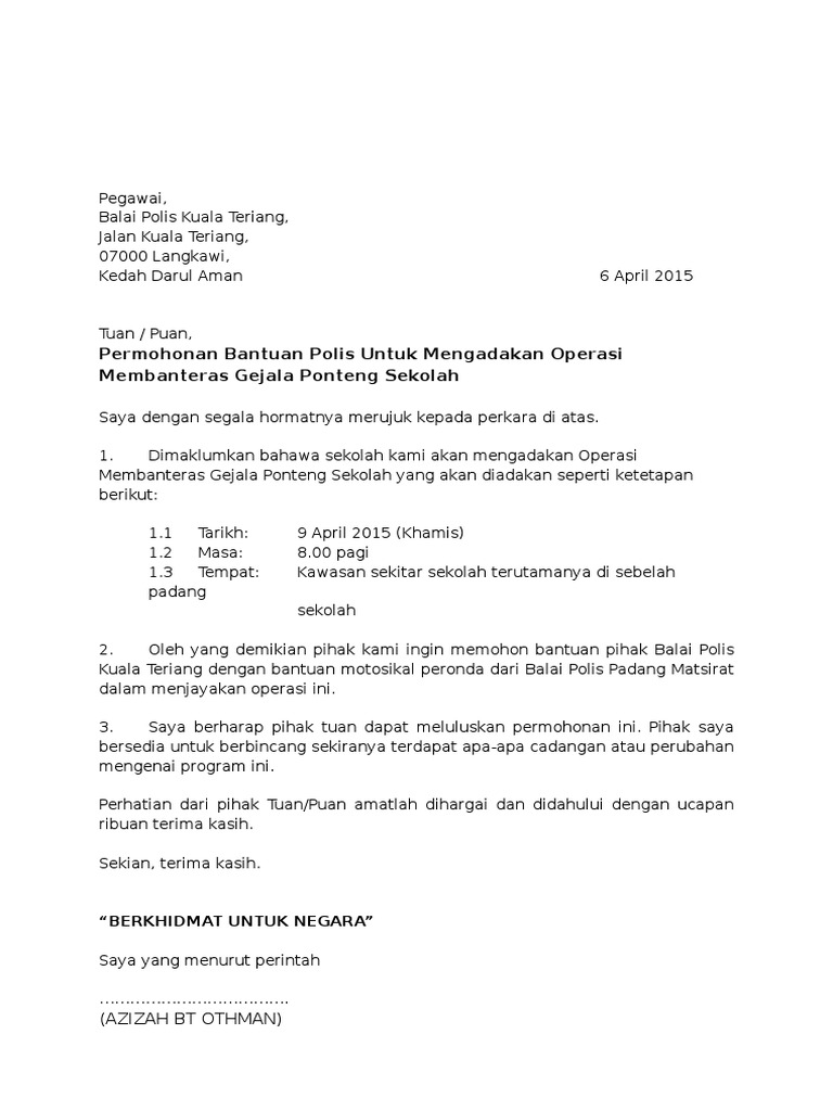 Surat Permohonan Operasi Banteras Ponteng Pdf